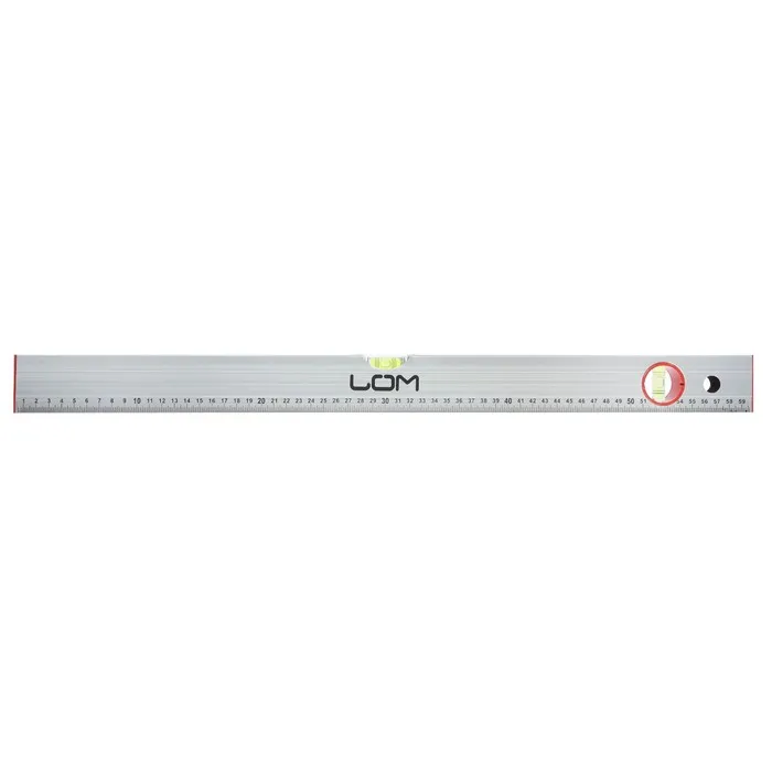Уровень ЛОМ выполнен из прочного алюминиевого профиля прямоугольной формы. Инструмент оснащён пластмассовыми заглушками на обоих концах. Модель имеет 2 мерительных глазка для проверки отклонений по горизонтали и вертикали.