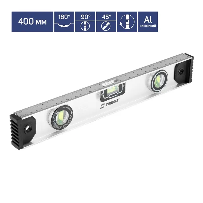 Уровень алюминиевый магнитный ТУНДРА, эргономичные ручки, 3 глазка, 600 мм — Характеристики