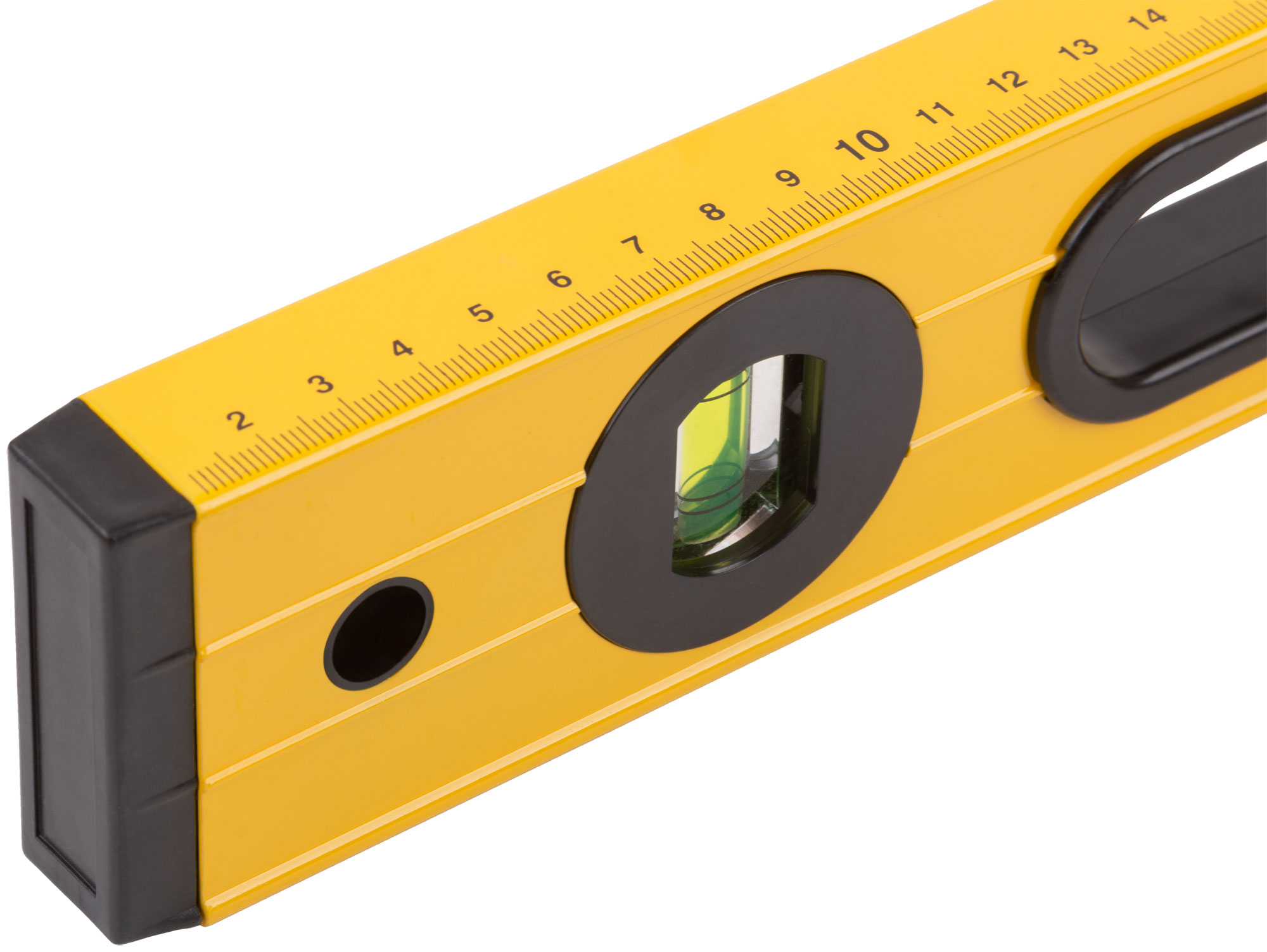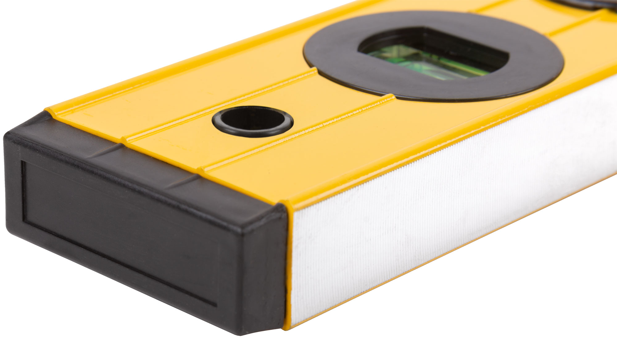 Уровень изготовлен из прочного алюминия с пластиковыми внутренними ручками для удобства в работе. Фрезерованная рабочая грань и ребра жесткости на боковых сторонах гарантируют долговечность и устойчивость к деформации.