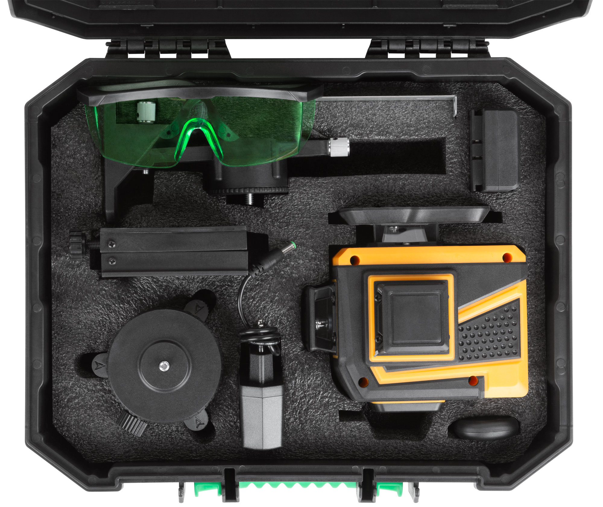 Этот уровень оснащен тремя зелеными лучами, создающими две вертикальные и одну горизонтальную плоскость на 360°. Два уровня яркости позволяют эффективно работать как внутри помещений, так и на улице. Встроенная функция самоуспокоения и возможность фиксации лазерных линий делают его удобным в эксплуатации.