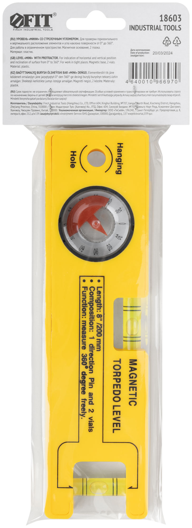 Уровень "Мини" от бренда FIT станет незаменимым помощником для мастеров, работающих в ограниченном пространстве. Этот инструмент позволяет точно измерять углы наклона поверхности от 0° до 360°, что делает его идеальным для использования в местах с ограниченной доступностью.