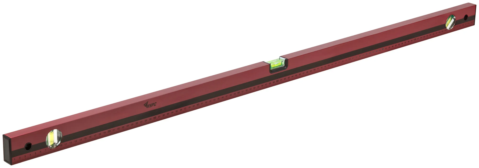Используйте уровень КУРС длиной 1200 мм для точной разметки и выравнивания при строительных и отделочных работах. Благодаря трем глазкам, он позволяет быстро и точно определять отклонения от горизонтали и вертикали.