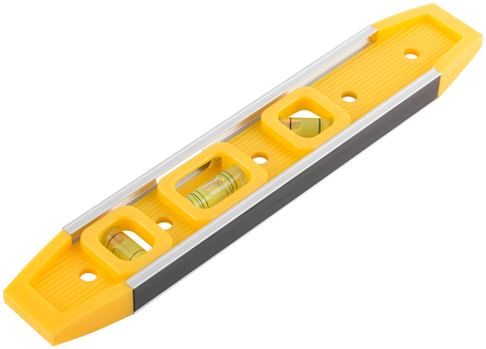 Уровень "Торпедо" пластиковый, 3 глазка, магнитный, с алюминиевой рамкой 225 мм