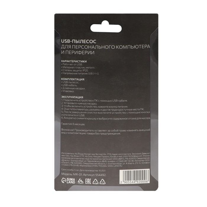 USB Пылесос Luazon MR-01, для ПК, с насадками, USB, зелёный — Характеристики