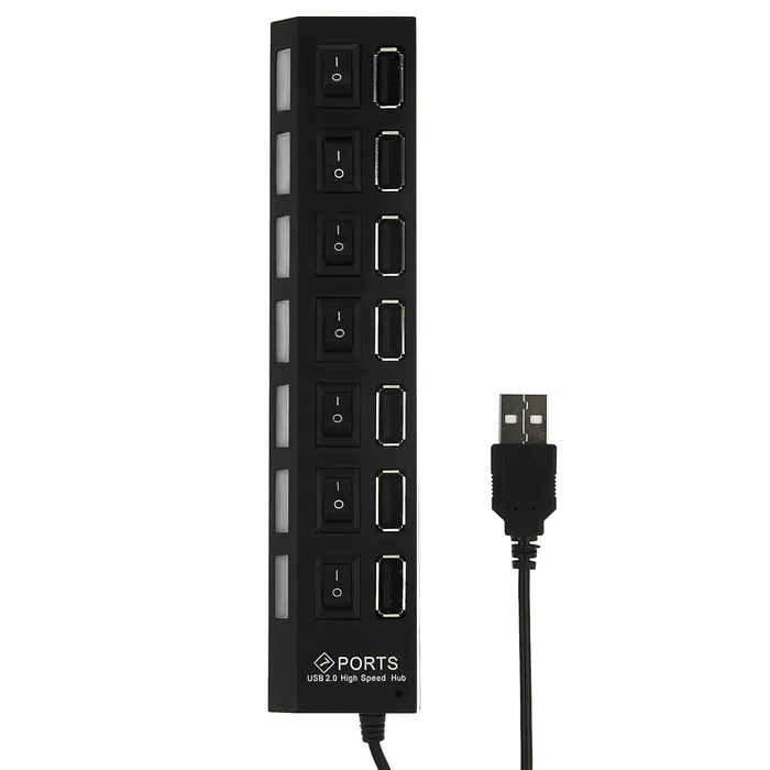 USB-разветвитель Luazon, 7 портов с выключателями, USB 2.0, черный — Характеристики