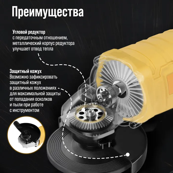 УШМ ТУНДРА, обрезиненная рукоятка, 1000 Вт, 11000 об/мин, 125 мм — Характеристики