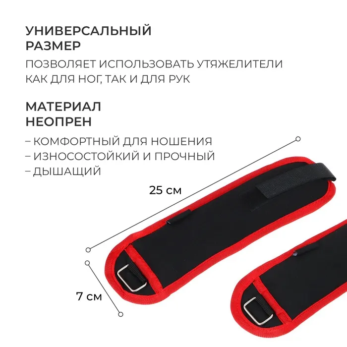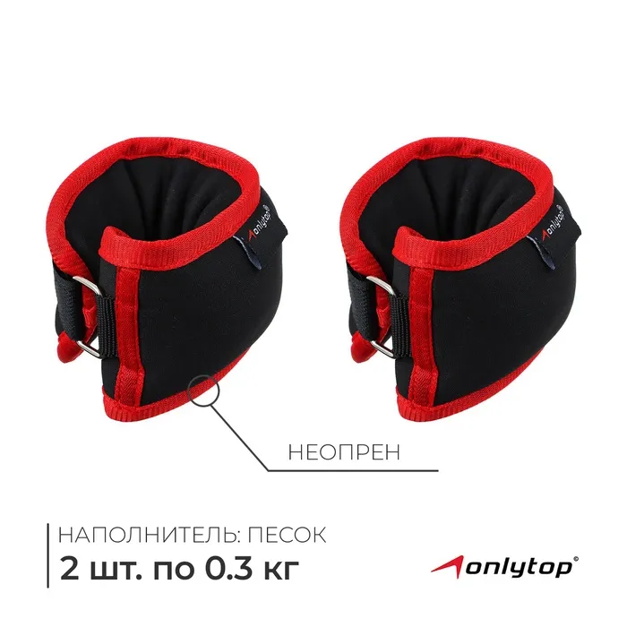 Утяжелители на запястье ONLYTOP, 2 шт. х 300 г, цвет красный — Характеристики