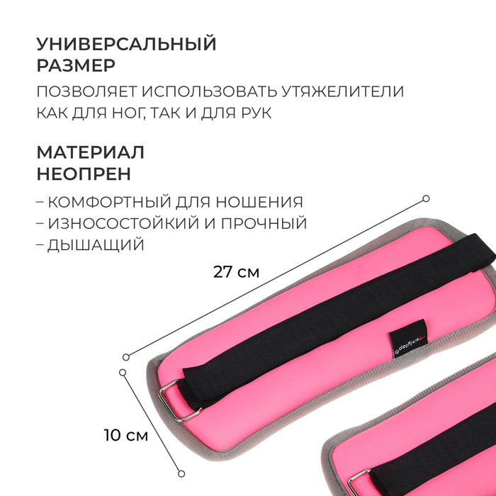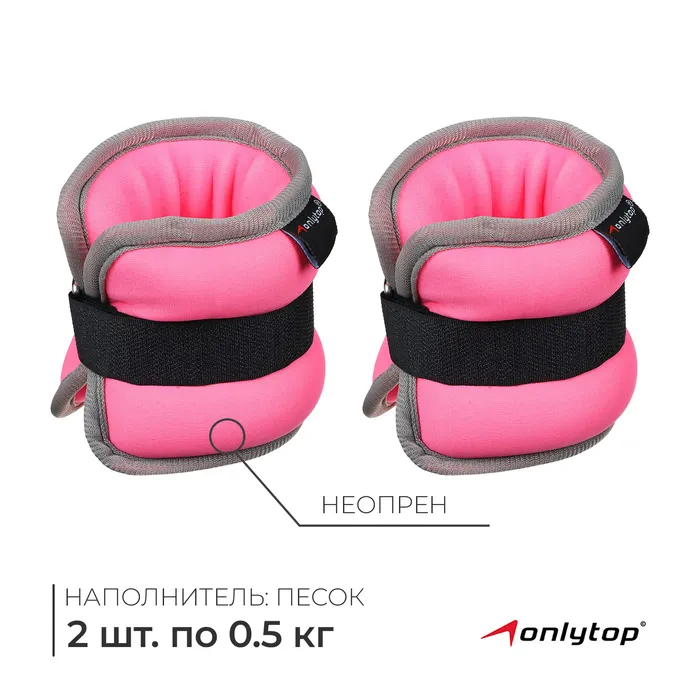 Утяжелители неопреновые ONLYTOP, 2 шт. х 0,5 кг, цвет розовый — Характеристики