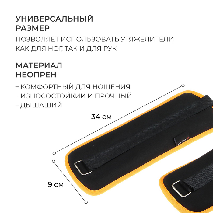 Утяжелители неопреновые ONLYTOP, 2 шт. х 1 кг, цвет чёрный/оранжевый — Характеристики