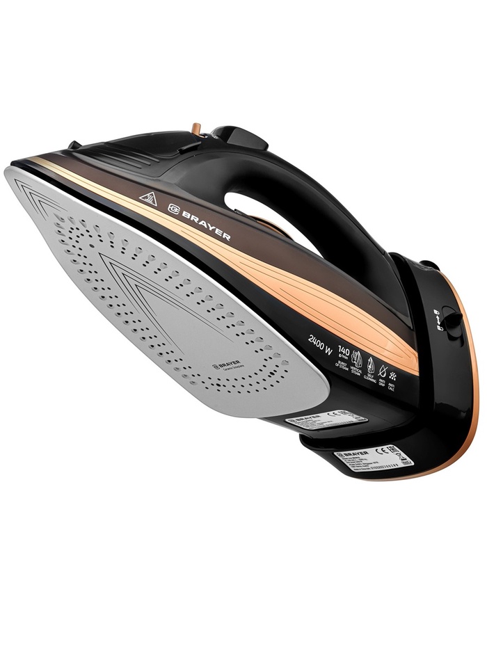 Утюг паровой BRAYER 4010BR, 2400 Вт, керамичекая подошва, 320 мл, беспроводной, коричневый — Характеристики