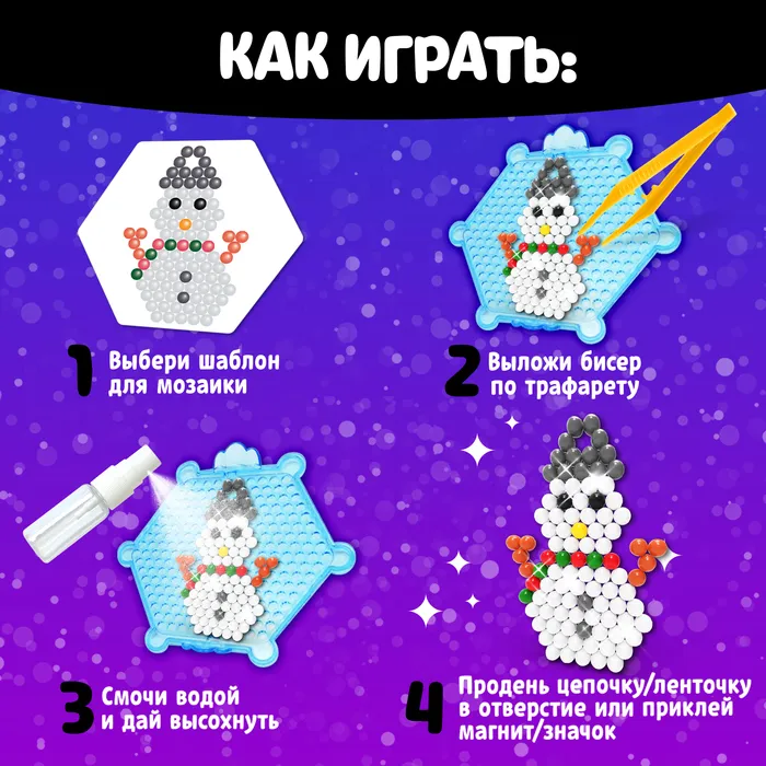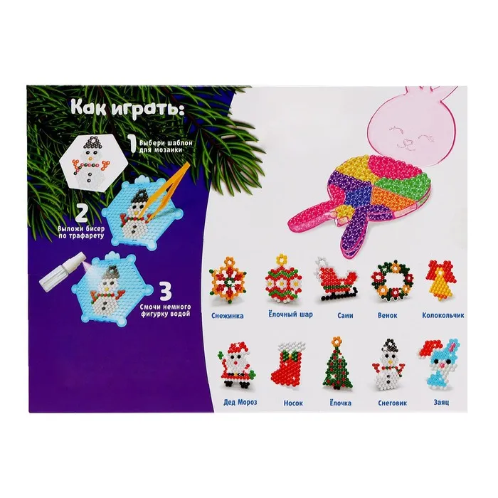 Аквамозаика «Зайчик» скрасит дни в ожидании Нового года и поможет весело и с пользой провести время. Ребёнок соберёт 10 объёмных фигурок из шариков-пикселей, потренирует мелкую моторику и внимание.