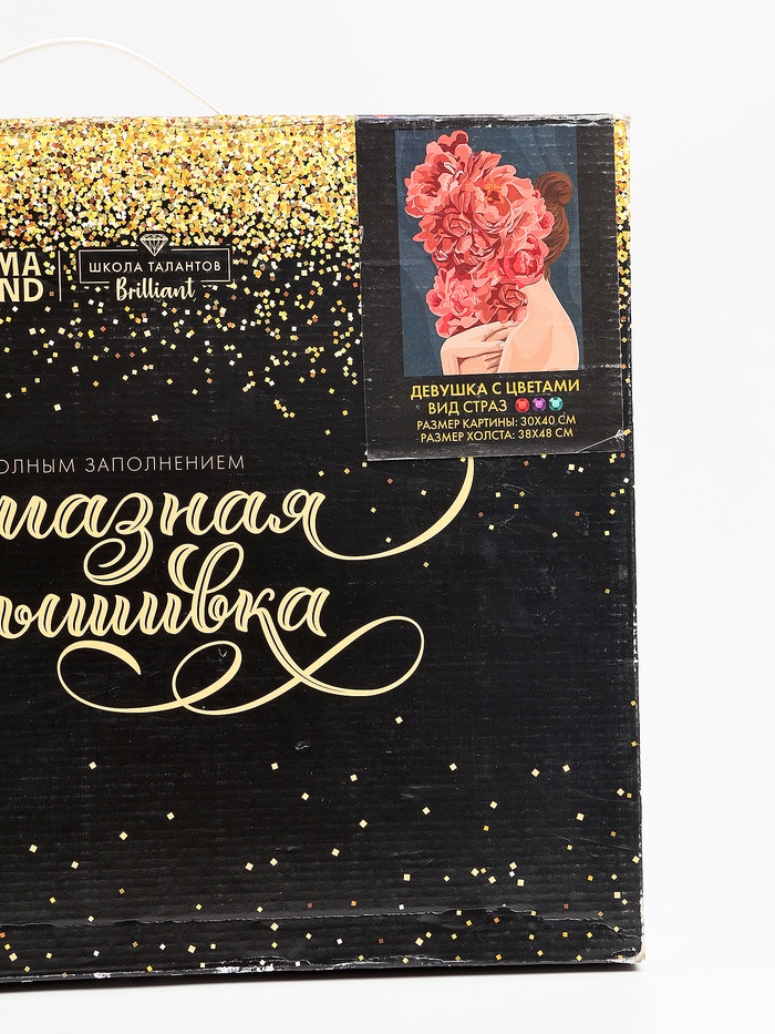 УЦЕНКА Алмазная вышивка на раме с полным заполнением «Девушка с цветами», 30×40 см — Характеристики