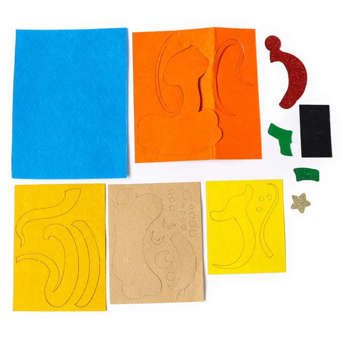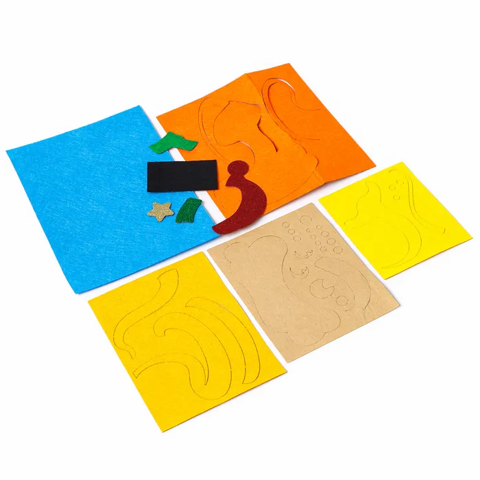 Детям нравится создавать поделки из самых невероятных материалов. Оригинальный набор для создания фетровой картины по-настоящему увлечёт ребёнка и станет удачным подарком для талантливого малыша! Теперь вам не нужно вырезать детали вручную, просто отделите защитную пленку и приклейте их на нужное место.