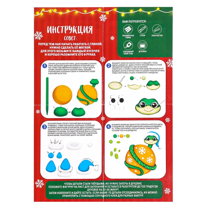 УЦЕНКА Ёлочная подвеска из полимерной глины своими руками на новый год «Змейка на шарике», набор для творчества — Характеристики