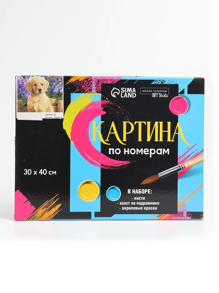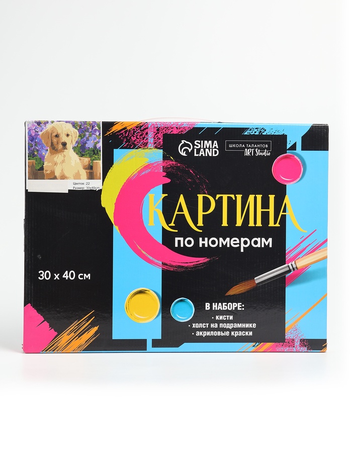 УЦЕНКА Картина по номерам на холсте с подрамником «Щенок лабрадора», 40×30 см — Характеристики