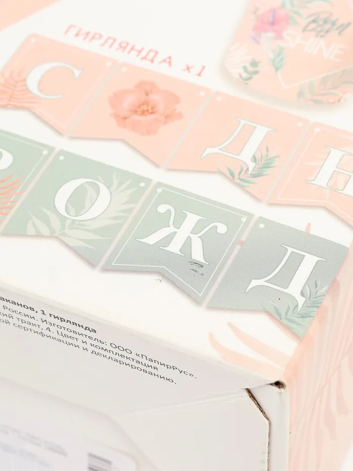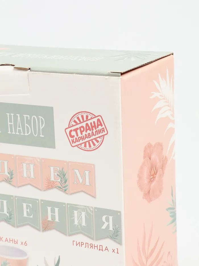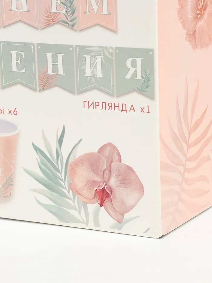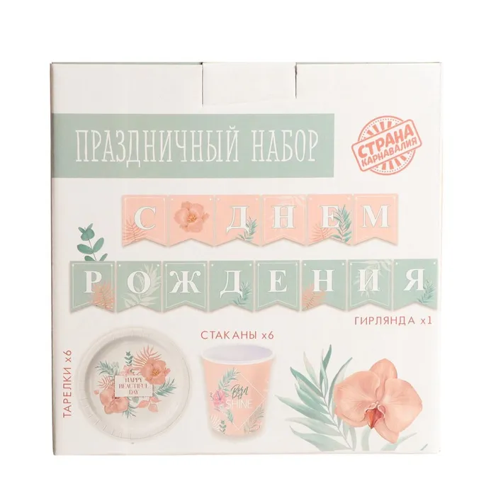 УЦЕНКА Набор бумажной посуды «Happy birthday, цветы»: 6 тарелок, 6 стаканов, 1 гирлянда — Характеристики