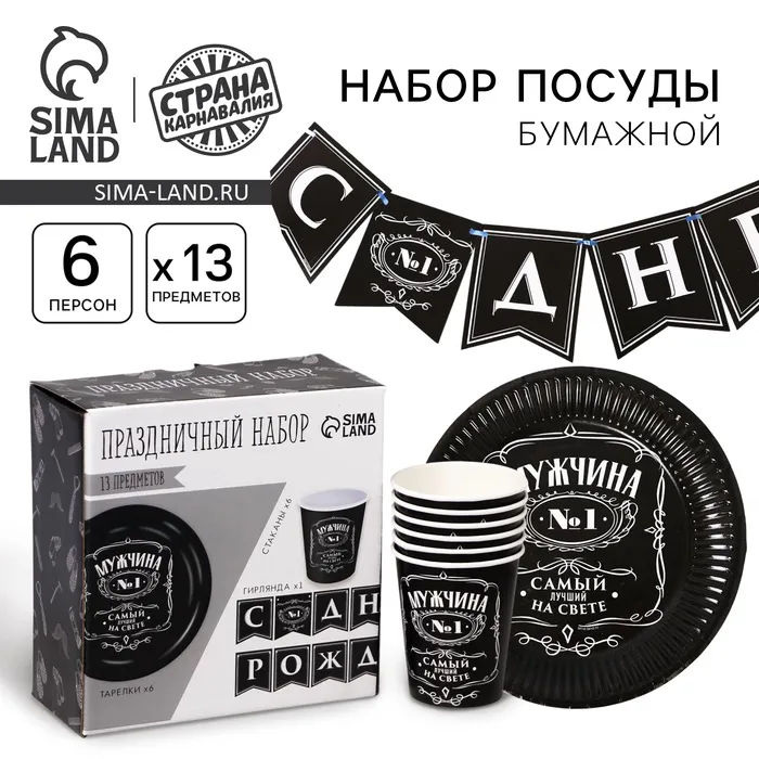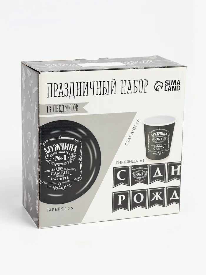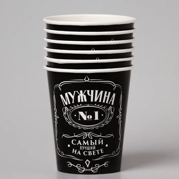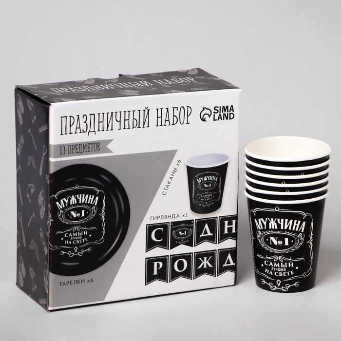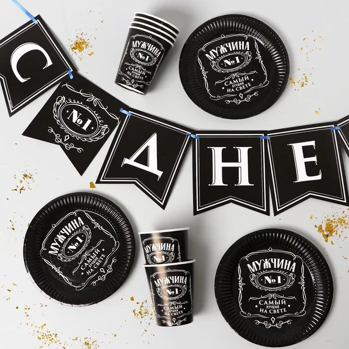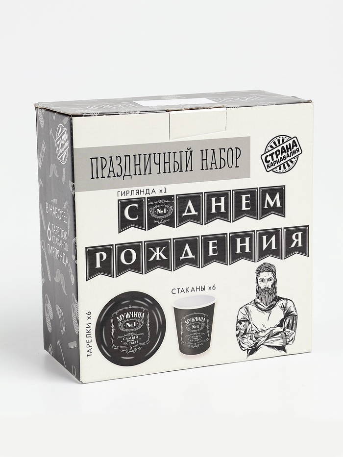 УЦЕНКА Набор бумажной посуды «Настоящий мужчина»: 6 тарелок, 6 стаканов, 1 гирлянда — Характеристики