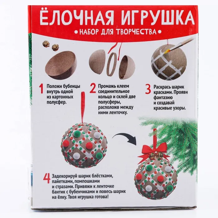 УЦЕНКА Набор для творчества «Ёлочная игрушка. Шар 1 шт.» картон — Характеристики