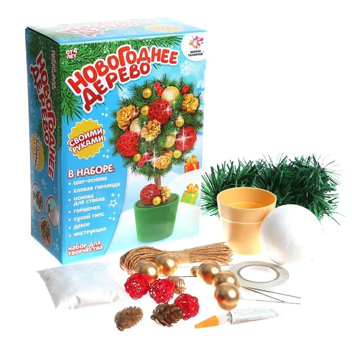 С набором для творчества «Новогоднее дерево» получится замечательная праздничная поделка, которая увлечёт и детей и взрослых.
