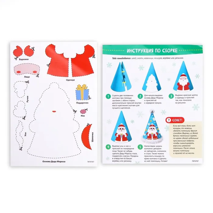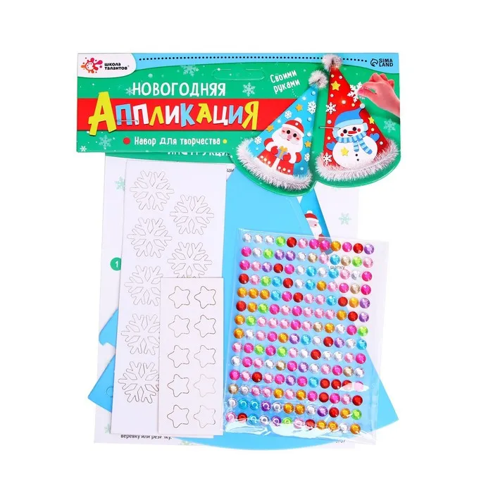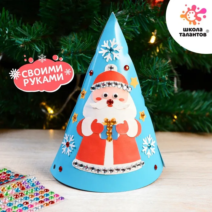 Набор для творчества «Новогодняя аппликация» позволит смастерить праздничный колпак из бумаги.
