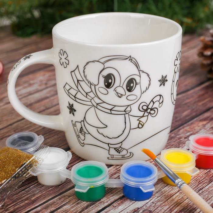 УЦЕНКА Набор кружка под раскраску «Сладкого Нового года» Пингвин 250 мл, в пакете — Характеристики