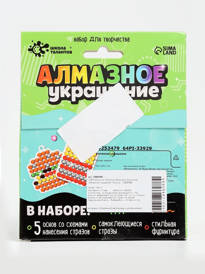 УЦЕНКА Школа Талантов Набор для творчества "Алмазное украшение" Фрукты — Характеристики