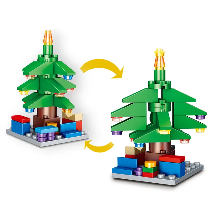 - Две модели в одном наборе: Из 123 деталей можно собрать разные новогодние композиции. Ребенок чередует сборку, поддерживая интерес к игре.
