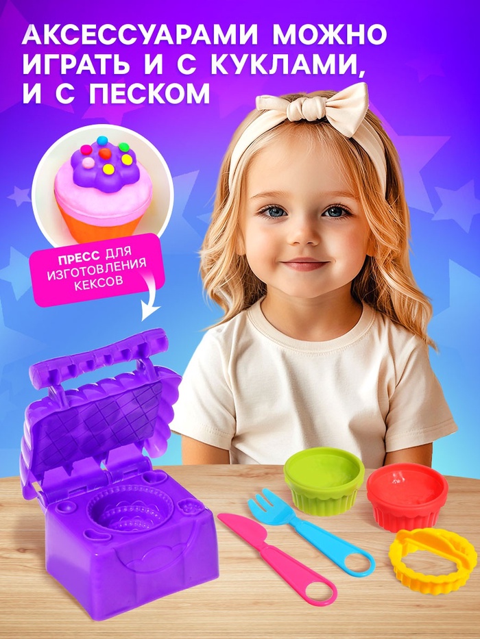 Готовьте кексики из пластилина с помощью пресса и создавайте украшения с помощью формочек.