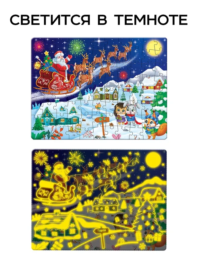 Светящийся пазл «Скоро Новый год» — то, что нужно для полезного и интересного досуга! Такой подарок поможет ребёнку скрасить ожидание праздника, а также потренировать мелкую моторику, внимательность, логическое мышление и память.