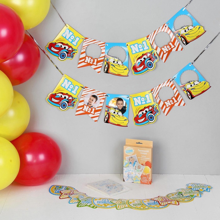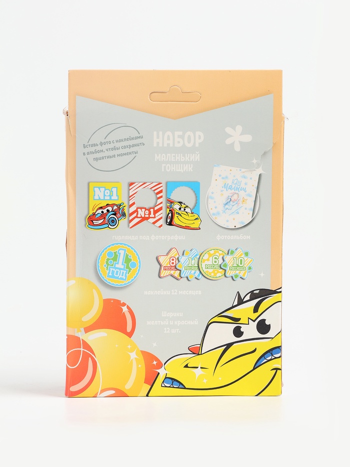 УЦЕНКА Воздушные шары "Гонщик", фотоальбом, гирлянда, наклейки, 24 предмета в наборе — Характеристики