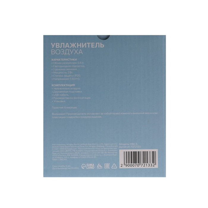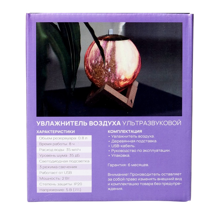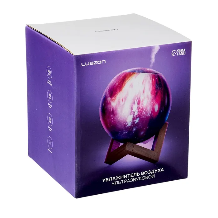 Увлажнитель-ночник Luazon HM-5, ультразвуковой "Планета", 2 Вт, 0.8 л, от USB — Характеристики