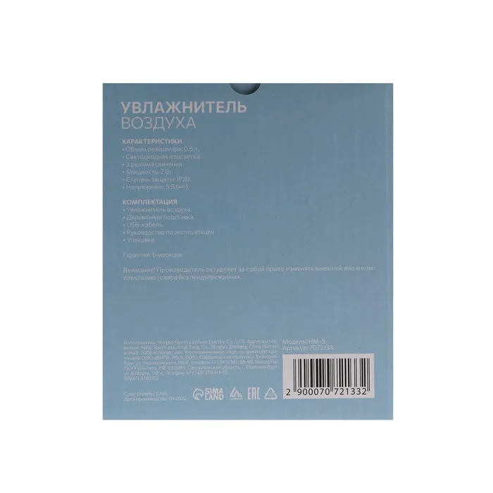 Увлажнитель Luazon HM-5 повышает содержание водяных паров в помещении. Если воздух пересушен из-за погодных условий или батарей отопления, прибор доведёт влажность до нормального значения. Устройство освежит помещение и позволит вам легче дышать.