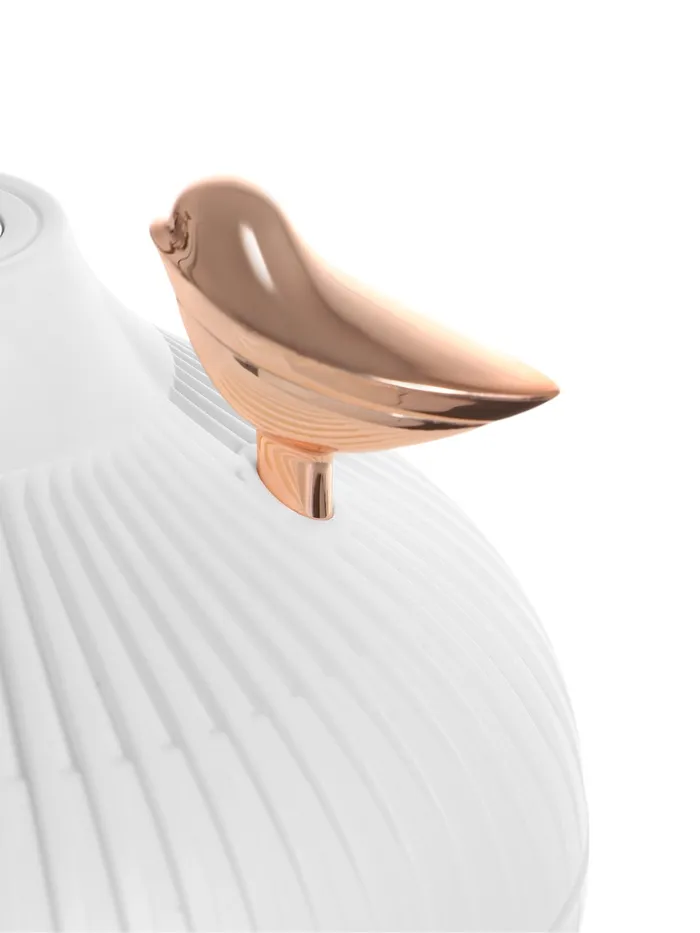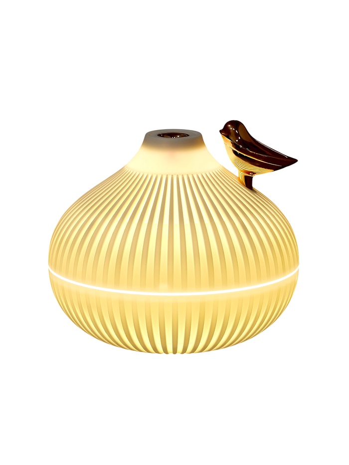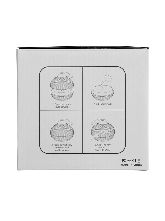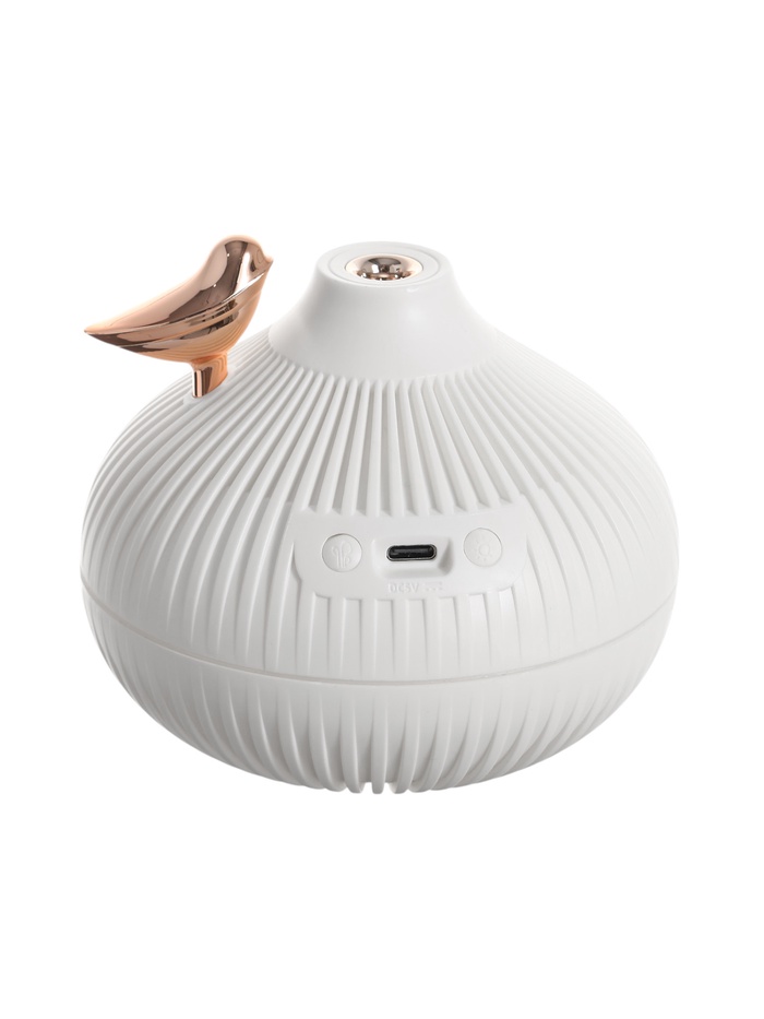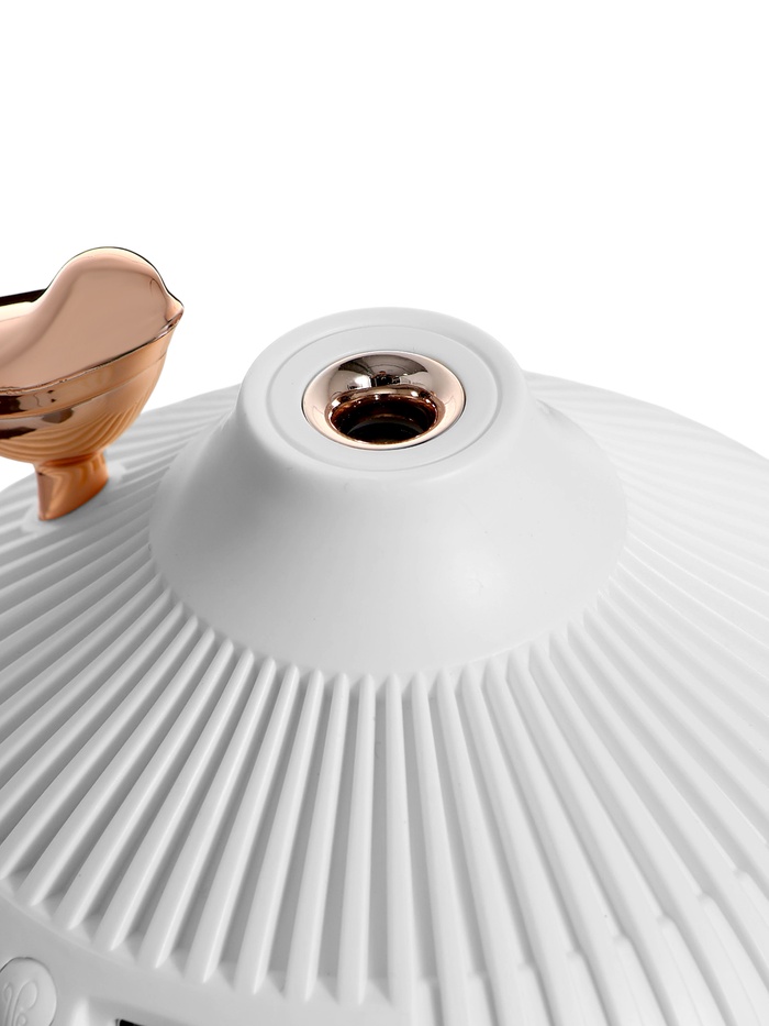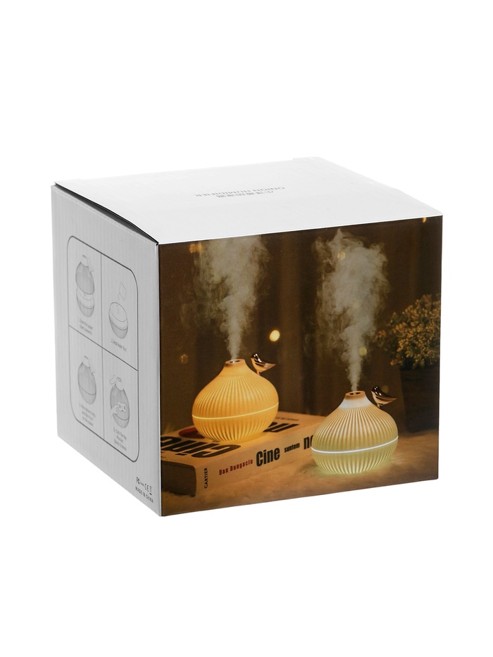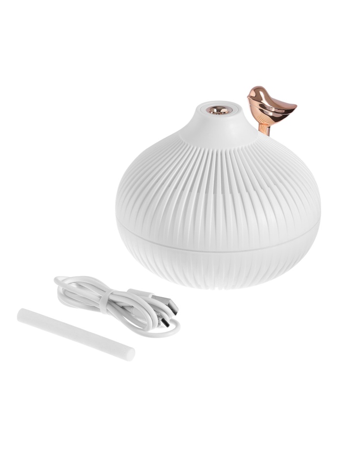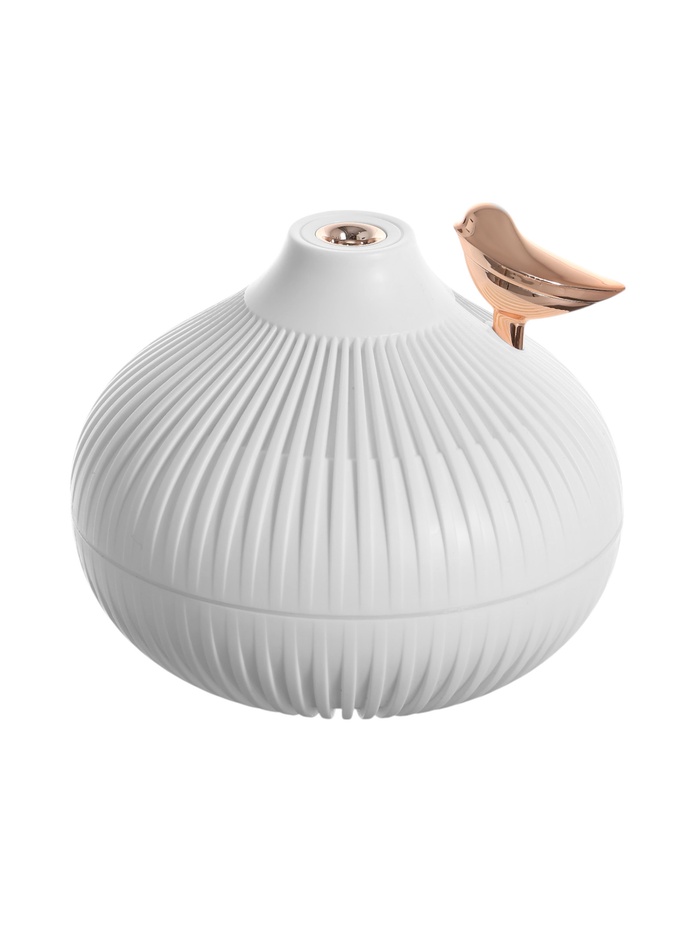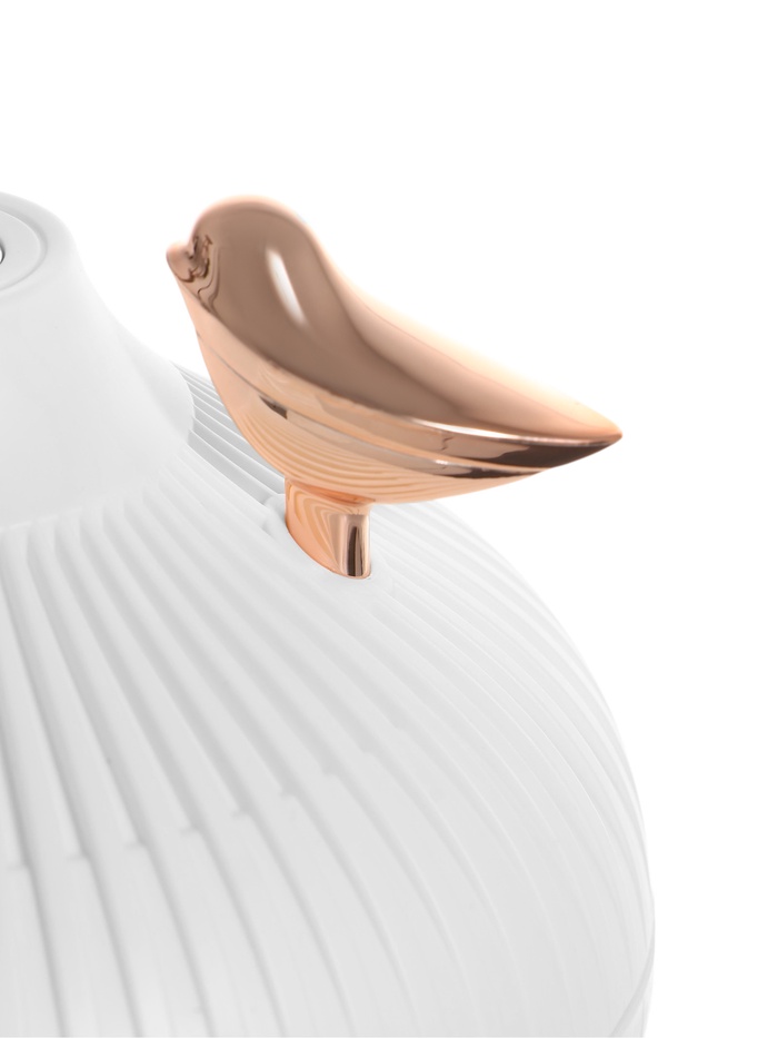 - Компактный и стильный дизайн: Белый корпус, деталь в виде птички и небольшие размеры позволяют устройству органично вписаться в любой интерьер. Увлажнитель легко разместить на столе или тумбочке.