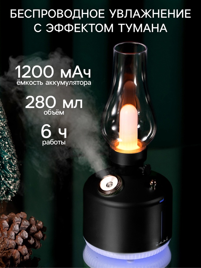 Увлажнитель воздуха «Керосинка» HM-19 ультразвуковой, 0.28 л, 1.5 Вт, 1200 мА/ч, USB, подсветка, эффект тумана, чёрный — Характеристики