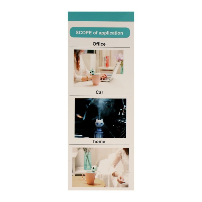Простое управление делает увлажнитель доступным для ребёнка. Вам понадобится только одна кнопка, которой можно управлять интенсивностью испарения и цветом подсветки. Милый дизайн ввиде котика с большими светящимися глазами привлечёт внимание вашего ребёнка.
