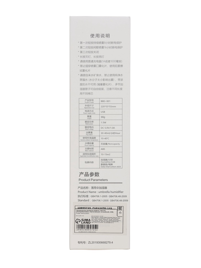 Увлажнитель воздуха LHU-03, ультразвуковой, портативный, погружной, USB, белый — Характеристики