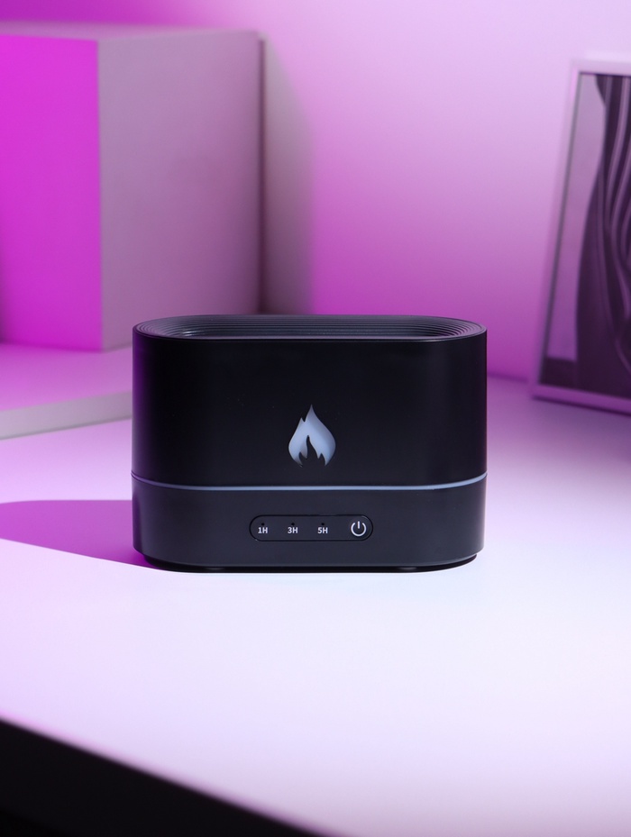 Этот компактный увлажнитель создаёт в помещении атмосферу мягкого тепла и спокойствия: ультразвуковое распыление, эффект «живого пламени» и подсветка работают вместе, чтобы сделать воздух комфортнее, а пространство — уютнее. Питание от USB позволяет разместить устройство где угодно: на тумбе, рабочем столе или в небольшой комнате.