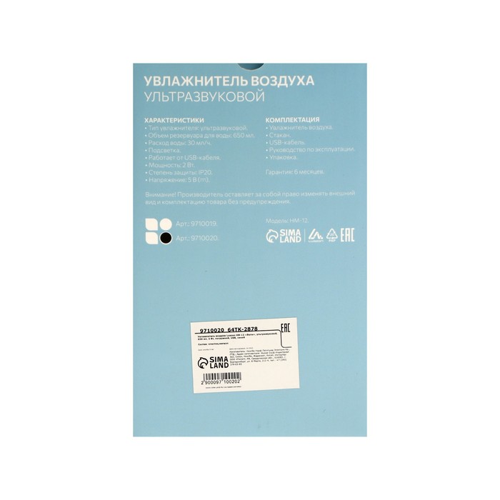 Увлажнитель воздуха Luazon HM-12 эффективно увлажняет воздух в помещении, помогая облегчить работу легких, избавиться сухости кожи, снизить риск появления распираторных заболеваний и аллергических реакций.