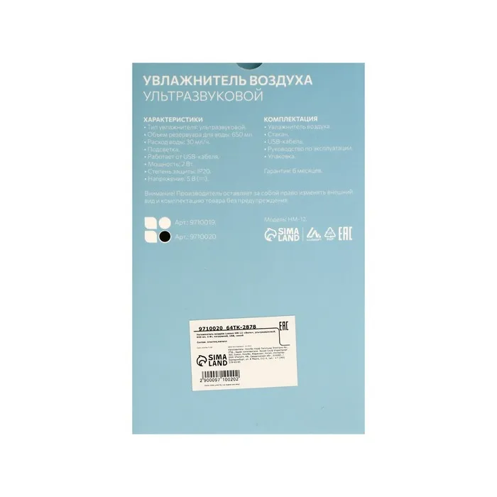 Увлажнитель воздуха Luazon HM-12 "Волк", ультразвуковой, 650 мл, 2 Вт, погружной, USB,черный — Характеристики