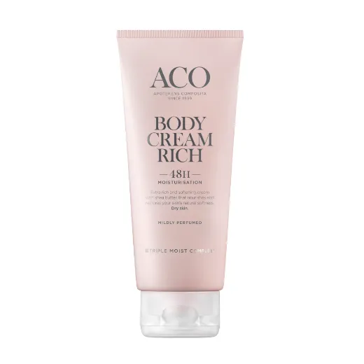 ACO Body Cream Rich — это насыщенный и смягчающий крем, который глубоко увлажняет сухую кожу в течение 48 часов.