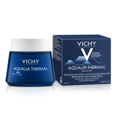 Термальный ночной крем Aqualia борется с потерей влаги, регидратируя все типы кожи с помощью технологии, вдохновленной изотонической регидратацией.