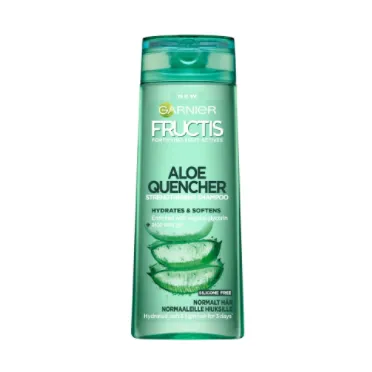 В состав шампуня Garnier Fructis Aloe Quencher входит увлажняющий гель алоэ вера и растительный глицерин природного происхождения. Шампунь, разработанный для нормальных волос, эффективно увлажняет, укрепляет и питает волосы. Экстракты яблока и лимона в составе добавляют мягкость и естественный блеск.