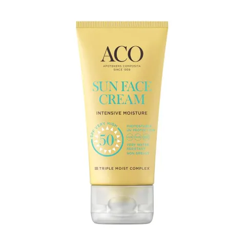 Интенсивно увлажняющий солнцезащитный крем для лица ACO с SPF 50+, обеспечивающий мгновенную защиту от солнечных лучей UVA и UVB.