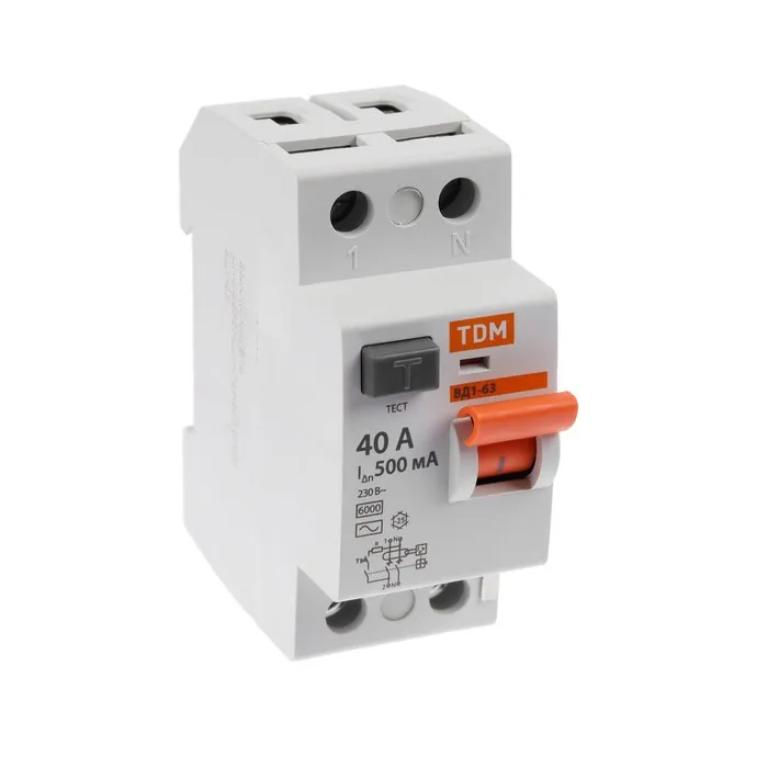 УЗО TDM ВД1-63, 2п, 40 А, 500мА, SQ0203-0093