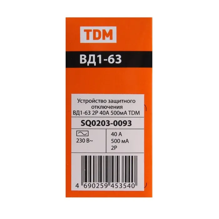 УЗО TDM ВД1-63, 2п, 40 А, 500мА, SQ0203-0093 — Характеристики