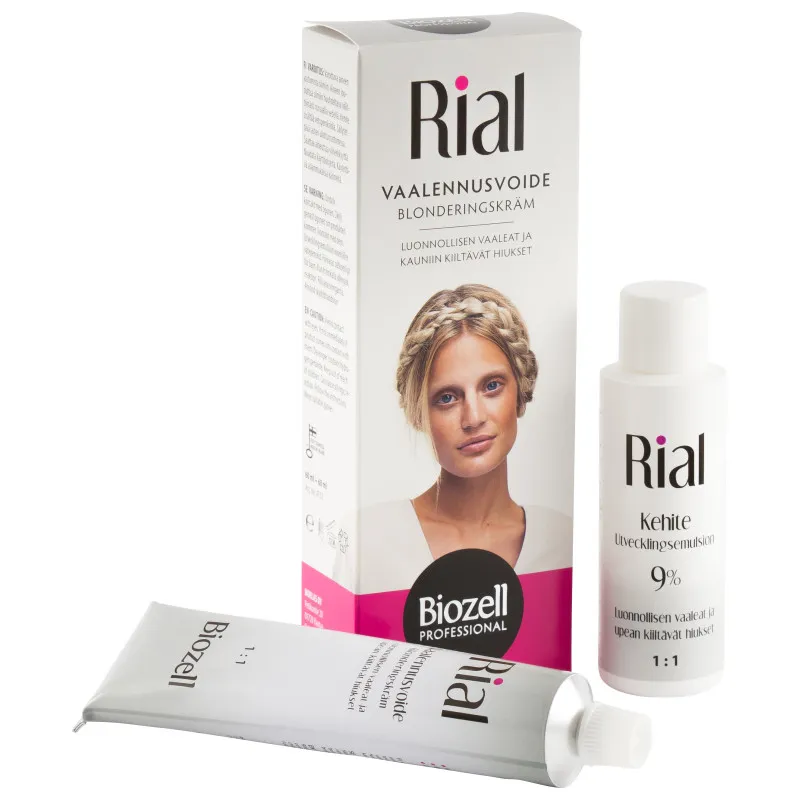 Осветляющий крем Biozell Rial, произведенный в Финляндии, это нежный, без запаха осветляющий крем для волос, который осветляет их оттенок на 2-3 тона. Уникальный пигментированный крем не добавляет цвета волосам, а делает их красиво естественно светлыми. Содержащиеся в креме ухаживающие компоненты придают волосам потрясающий блеск! Крем освежает уже светлые волосы или осветляет потемневшие до золотисто-светлых. Содержит эффективные питательные и укрепляющие волосы вещества. Rial также подходит для мелирования волос. Объем упаковки 60 мл. Мы постоянно обновляем информацию о продукте. Однако, всегда рекомендуется проверять данные на упаковке.