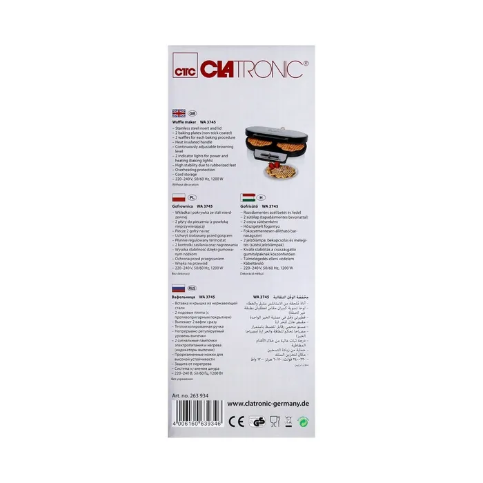 С вафельницей Clatronic WA 3745 вы легко сможете радовать себя и близких свежими, хрустящими вафлями в любое время.