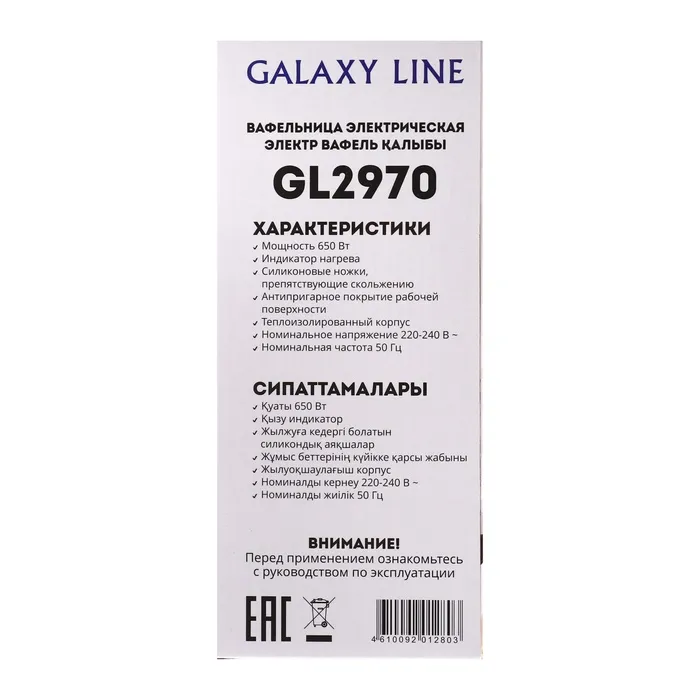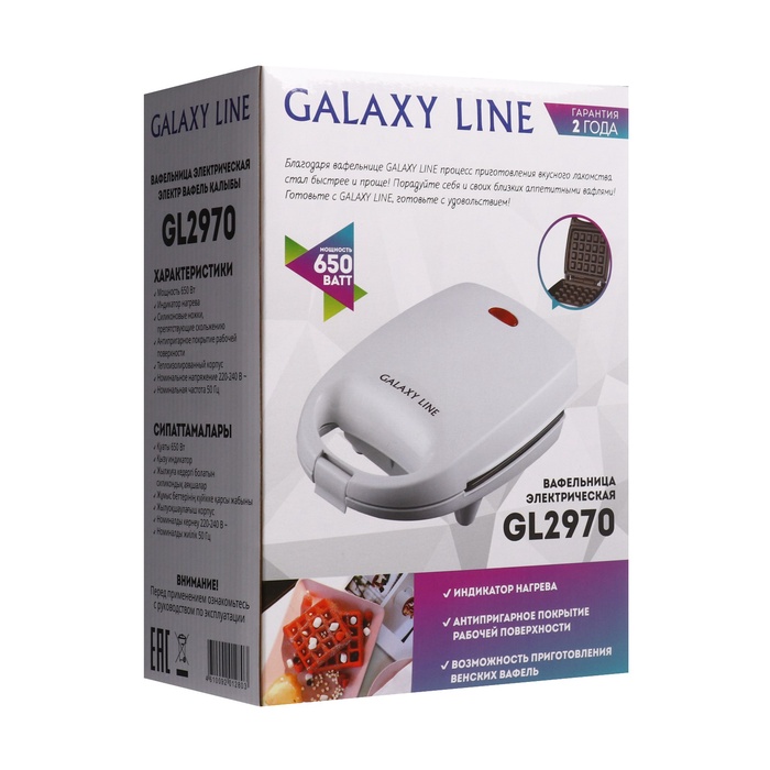 Вафельница электрическая Galaxy LINE GL 2970, 650 Вт, венские, белая — Характеристики