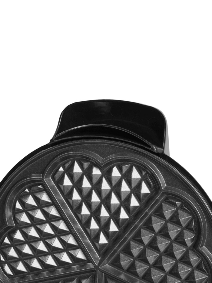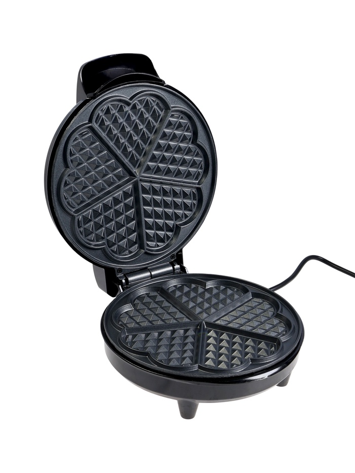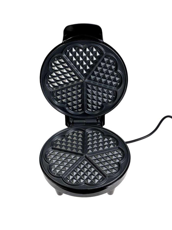 Маленькая по габаритам, но серьёзная по возможностям — эта вафельница превращает обычное тесто в ароматные венские вафли в форме сердца, идеально пропечённые снаружи и мягкие внутри. С мощностью 1200 Вт прибор быстро нагревается и равномерно распределяет жар по панелям, позволяя получить пять вафель за один цикл. Чёрный корпус в сочетании со стальным декором придаёт устройству аккуратный и современный вид, который органично впишется в интерьер любой кухни.