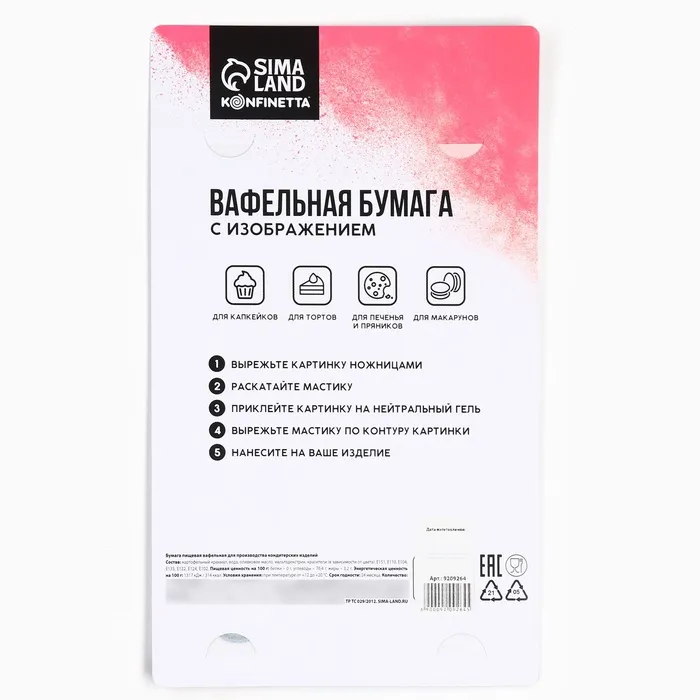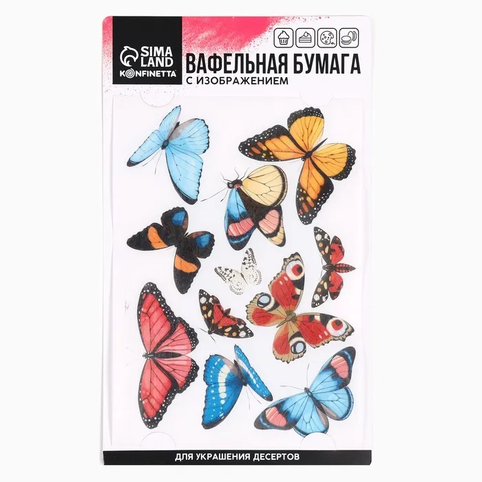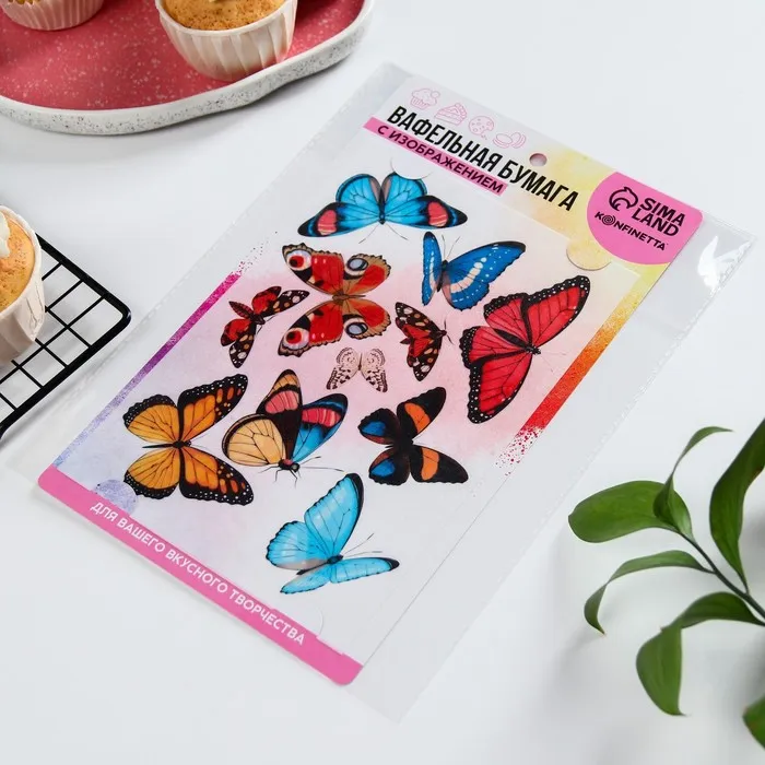 Вафельные картинки съедобные «Бабочки» для капкейков, торта KONFINETTA, 1 лист А5 — Характеристики